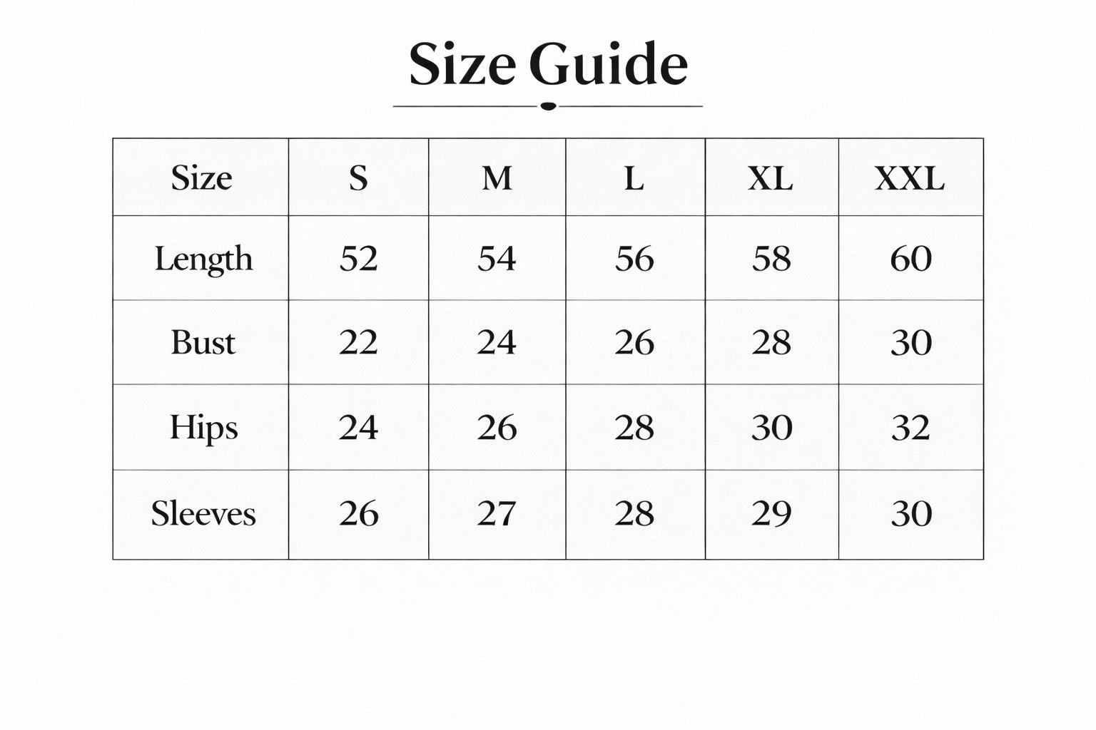 - Size Guide